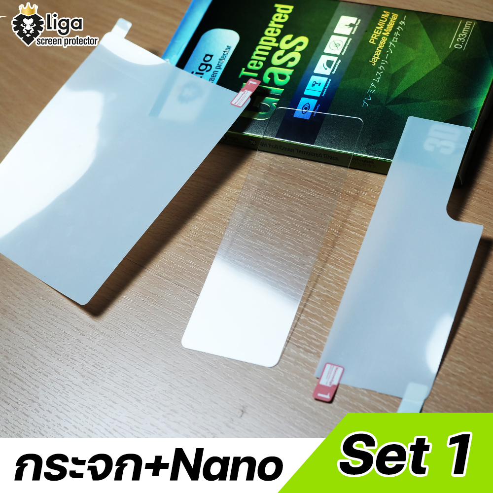 1 Set จะมี 3 ชิ้น = กระจก 1 ชิ้น + ฟิล์ม Nano 2 ชิ้น
